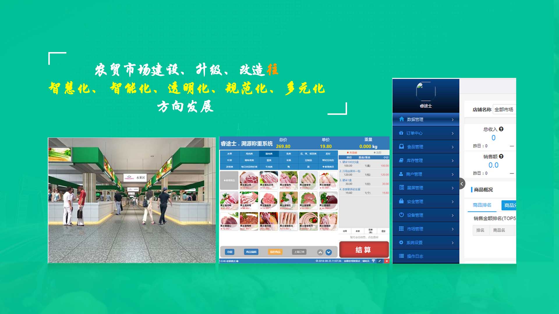 【睿途士首創(chuàng)】顛覆傳統(tǒng)的“智慧農(nóng)貿(mào)市場系統(tǒng)”,解決了傳統(tǒng)農(nóng)貿(mào)系統(tǒng)單一安卓掛屏,昂視不方便看、不直觀、無互動性,傳輸信息不齊全、不穩(wěn)定的問題,也解決了按鍵電子秤商品難找、商品代碼難記、按鍵操作不靈活、支付不智能,對收銀管理、銷售商品、菜名、菜價、打折、優(yōu)惠、會員、線上下單、采購等無法實(shí)現(xiàn)實(shí)際菜品交易和追溯等問題。